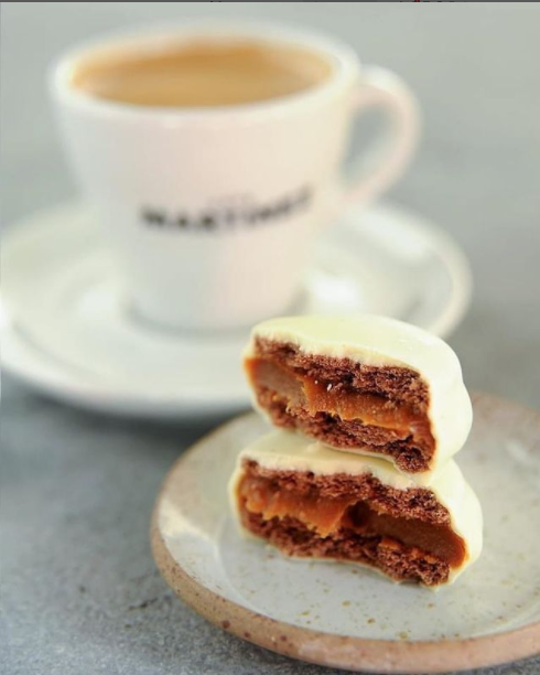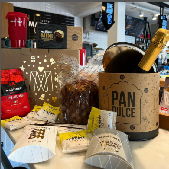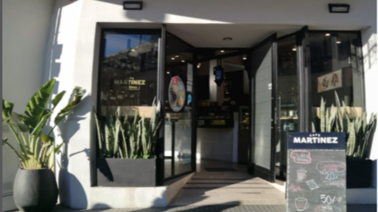 Ofrece cafetería de servicio a la barra, que dispone de mesas en el interior y exterior del local. Una variedad de menú Martínez como: sandwiches, alfajores, galletitas y conitos de dulce de leche. Dentro de la misma opciones también libre de gluten tostados, barritas de cereal y masitas.