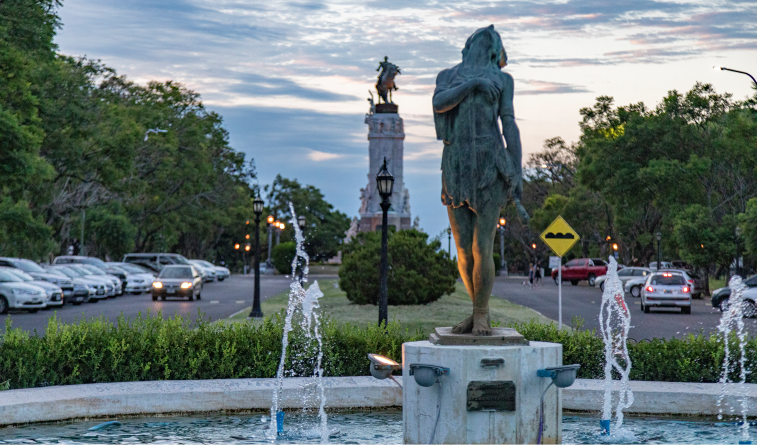 Una imponente obra de arte que adorna la ciudad desde 1920. Realizada con motivo de cumplirse el primer centenario del caudillo entrerriano, fue desarrollada por el escultor Agustín Querol y finalizada por Mariano Benlliure. El general y su caballo aparecen erigidos sobre una columna de mármol, en la que se pueden apreciar varios grupos escultóricos que complementan la figura principal.