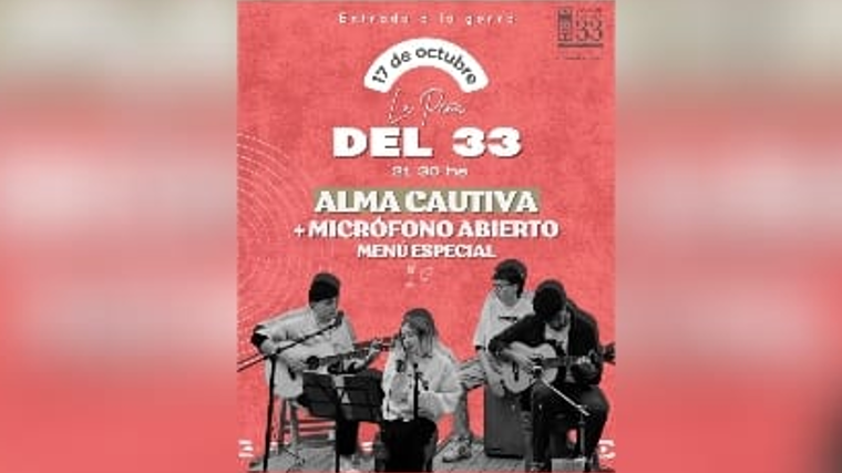 Se viene la segunda peña del 33. Almacen de los 33 realiza una vez más este evento y en esta oportunidad se presentará el grupo "Alma Cautiva" para disrutar de una noche de música, comida y quienes quieran sumarse, también, a un micrófono abierto y bailar.