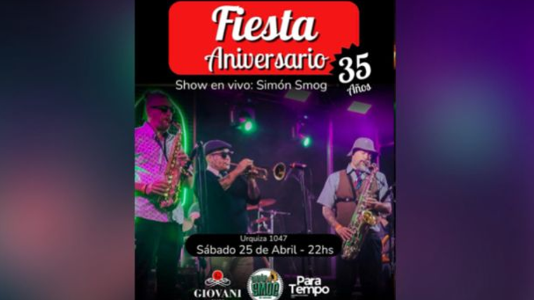 Giovanni Restó te invita a festejar sus 35 años en una noche especial con música en vivo de la mano de Simon Smog. Música, buena comida y el clima de siempre.