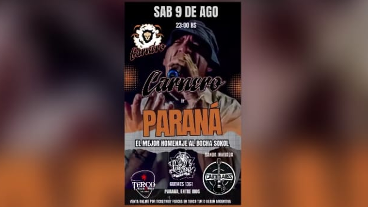 Se estará presentando por primera vez en nuestra ciudad la banda homenaje a Las Pelotas y a Alejandro "Bocha" Sokol, "Carnero". También estará presentandose "Cautelares" como banda invitada.