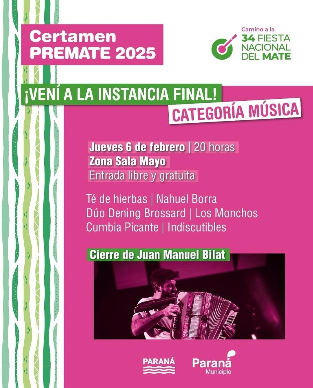 Los ganadores actuarán en la 34º Fiesta Nacional del Mate 2025, recibirán un premio en concepto de caché artístico y un certificado de participación de la Subsecretaría de Cultura de la Municipalidad de Paraná.