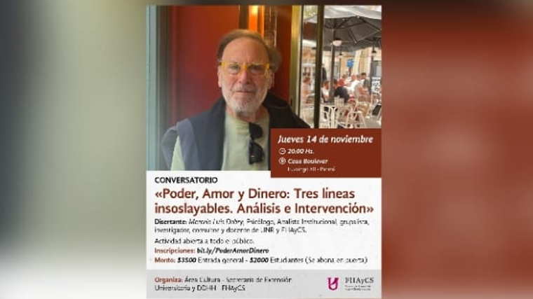 Entrada: General de $3500 / estudiantes es de $2000 - Reservas vía 343 4526527 (Marita Cortes) y bit.ly/Poder, Amor y Dinero/