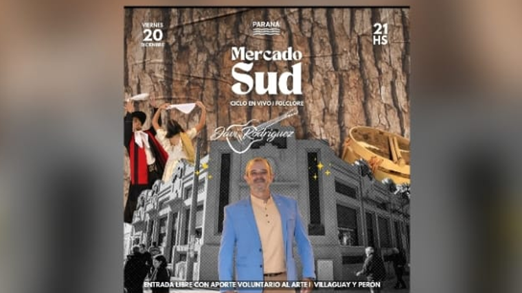 Mercado Sud nos invita a otra noche de folklore. En esta oportunidad con Javier Rodriguez como invitado, cantante e intérprete de nuestra localidad que nos trae más folclore para que la peña siga girando en su ronda. Por otro lado, también contará con propuestas de comidas, bebidas, aperitivos y postres totalmente artesanales para que acompañen esta hermosa noche de Diciembre en el Mercado Sud de la ciudad.