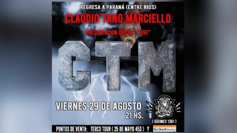 Vuelve a nuestra ciudad el ex integrante de la mítica banda "Almafuerte", Claudio Tano Marciello. No te pierdas está oportunidad de vivir un show único junto a uno de nuestros mejores guitarristas de nuestro país.