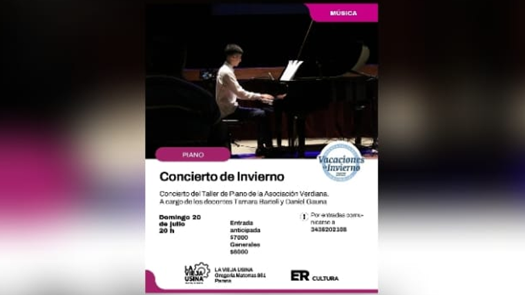 CONCIERTO DE INVIERNO – TALLER DE PIANO a cargo de los profesores Tamara Bartoli y Daniel Gauna. Los estudiantes del taller interpretarán obras del repertorio clásico y académico pasando por distintos niveles técnicos, estilísticos.