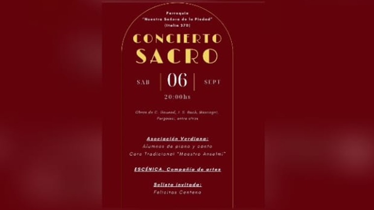 "Concierto Sacro" con la participación de: Alumnos de canto , piano y Coro Tradicional Lorenzo Anselmi de Asociación Verdiana y Felicitas Centeno como solita invitada.