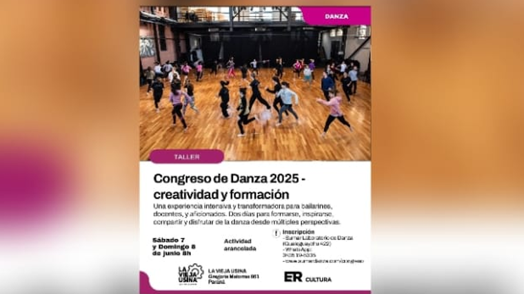 Próximo 7 y 8 de Junio se va a realizar el "CONGRESO DE DANZA 2025" Una experiencia intensiva y transformadora para bailarines, docentes, y aficionados. Dos días para formarse, inspirarse, compartir y disfrutar de la danza desde múltiples perspectivas.