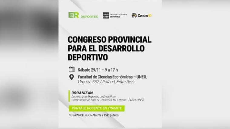 Llega a Paraná el Congreso Provincial para el Desarrollo Deportivo, un espacio pensado para quienes construyen, acompañan y proyectan el deporte en Entre Ríos. Un encuentro para formarse, debatir y fortalecer prácticas que impactan en la iniciación, la salud y el desarrollo deportivo en todas las edades.