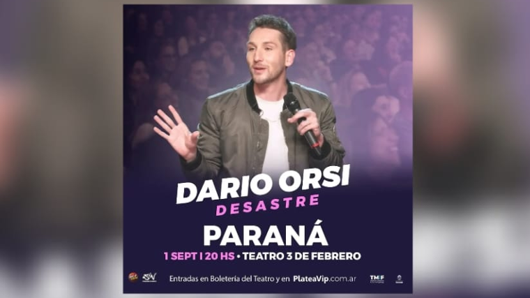 Dario Orsi, comediante y actor argentino, presenta su nuevo show de stand-up “Desastre”. Con un enfoque humorístico, Orsi toca temas como el amor, el sexo, el paso de los años y la vida de las personas “rata”.
