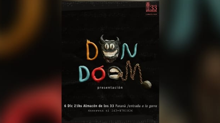 DON DOOM: Es un proyecto en formato trio de guitarra, synthes, trompeta, batería y bajo , integrado por Martin Perez Campos en bajo , Chelo Schiavi en batería y Nicolás Matteoda en guitarra, synthes y trompeta. La banda centrada en la improvisación en tiempo real mezcla géneros como el Stoner, ambient, rock, psicodelia, punk, waltz, drum and bass entre otros más. En esta ocasión llega a los 33 con amigos invitados a sumarse a las composiciones para una noche sonora ludica.