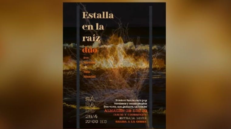 "Estalla en la raíz", obra compuesta por Eve Miranda y Mila Mancini nace del compartir musical en torno a la reflexión continua del rol de la música en la voz de la mujer. Folklore, fusión, rock-pop, composiciones propias se mezclan en esta propuesta en formato a dos voces, guitarra y bombo.