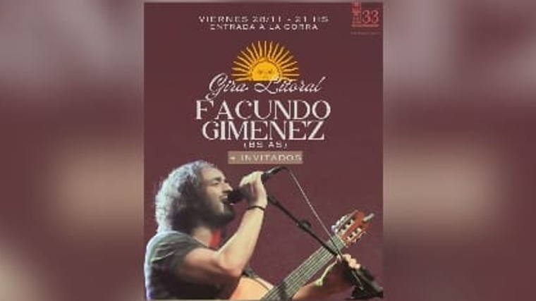 Facundo Gimenez se va a estar presentando en nuesta ciudad este fin de semana. En el marco de si gira pr el litoral. Oriundo de la ciudad de Longchamps Provincia de Buenos Aires, participó en escenarios y grabaciones desde muy temprana edad con artistas como Peteco Carabajal, Teresa Parodi, Atonio Tarragó Ros y Horacio Banegas entre otros. Su último álbum fué lanzado en 2019 con 11 canciones nuevas y artistas invitados como Roxana Carabajal, Natalia Barrionuevo y Bruno Arias. Éste cantautor bonaerense se encuentra recorriendo desde hace más de dos décadas todo nuestro país haciendo y cantando a nuestro querido cancionero popular Argentino.