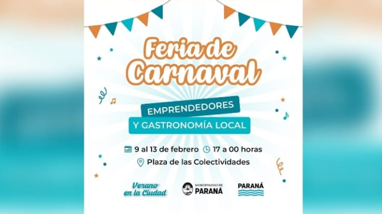 Del 9 al 13 de febrero se estará realizando una nueva edición de la tradiconal "Feria de Carnaval". En la misma participan artesanos y emprededores de distintos sectores. Además, también contará con un sector gastronómico para poder disfrutar de una variedad de sabores de nuestra ciudad.