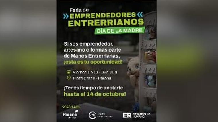 Este viernes, en el marco del día de la madre a celebrarse el próximo 19, se va a estar realizando una Fería de Emprendedres Entrerrianos. Un espacio pensado para visibilizar tu emprendimiento, comercializar tus productos y conectar con el público.