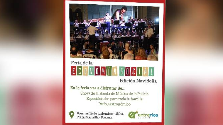 Se viene una nueva edición de La Feria de la Economía Social. En esta oportunidad se tratará de una edición navideña que contará con mas de 150 puestos de emprendedores de #EconomíaSocial que ofrecerán su producción para comprar y regalar en estas fiestas. También se podrá disfrutar de un patio de comidas, entretenimiento y shows para toda la familia con un cierre a cargo de la Banda de la Policía de Entre Ríos.-