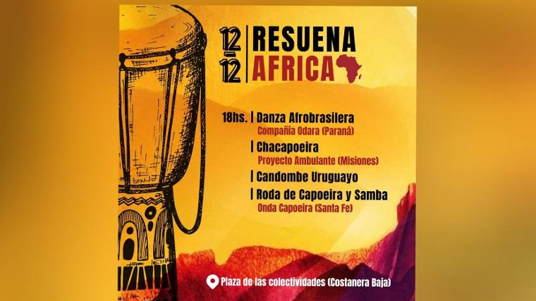 "Resuena Africa" es un Festival en el cual se comparten las expresiones de la matriz africana que se desarrollan en nuestra región litoral con intervensiones de Danzas Afrobrasileras, Chacapoeira, Candombe, Capoeira y Samba.-