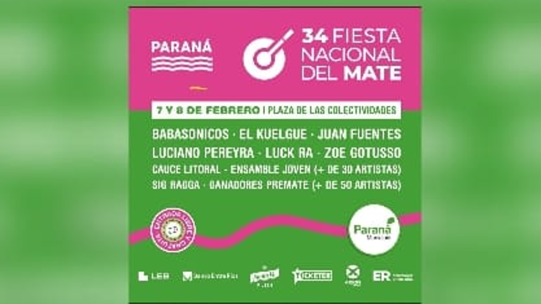 Se viene una nueva edición de la tradicional Fiesta Nacional del Mate. Se trata de la 34º Edición y se va a realizar realizando el 7 y 8 de Febrero. La misma contará con 4 escenarios, música en vivo cin artistas locales y nacionales, gastronomía local y mucho más. Si bien la entrada será libre y gratuita, como es habitual, la fiesta tendrá ubicaciones preferenciales, cuyos tickets y valores se darán a conocer oportunamente en los distintos canales de difusión.