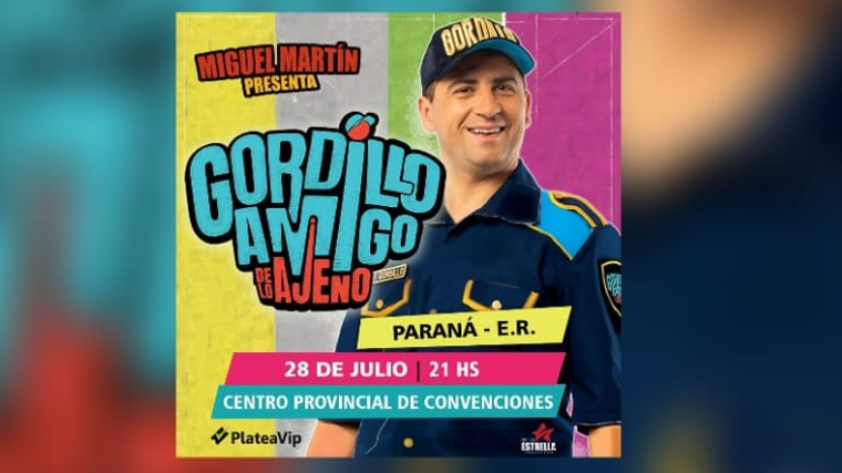 Llega a nuestra ciudad el humorista Miguel Martín presentando su show "Gordillo amigo (de lo ajeno)". Se trata de un espectáculo apto para toda la familia en el cual el oficial contará múltiples operativos y va a mostrar la nueva “Tecnologìa Polesiaca” que será testeada en vivo y en directo.