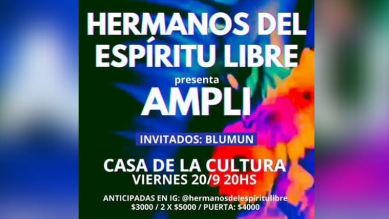 Entrada: Anticipadas al IG @hermanosdelespiritulibre y en puerta.-