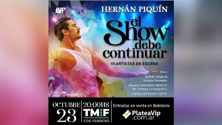 Se presentará "Hernan Piquín: El Show Debe Continuar". A traves de esta obra, Hernan Piquín, logra revivir la apasionada vida artística de Freddy Mercury.