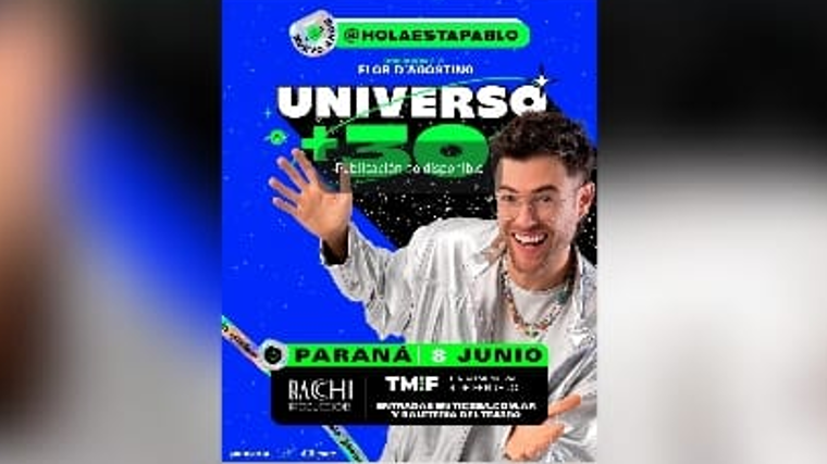 Pablo Albella presenta UNIVERSO +30 en PARANÁ. Llegaron los 30, y la vida no es como Pablo la imaginaba. Por eso, al darse cuenta, Pablo decide emprender un viaje a través del universo +30 para descubrir qué le está pasando, y encontrar esas respuestas que lo ayudarán a saber cómo convertirse en lo que siempre quiso ser: una persona un poco más feliz.
