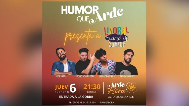 Litoral Stand Up Comedy presenta "Humor que Arde" en Arde Flora. Lisandro "La Bondiola" Riera, Belisario Ruiz, Mateo Izza y Nacho Koornstra haciendo sus mejores gracias y bailecitos.