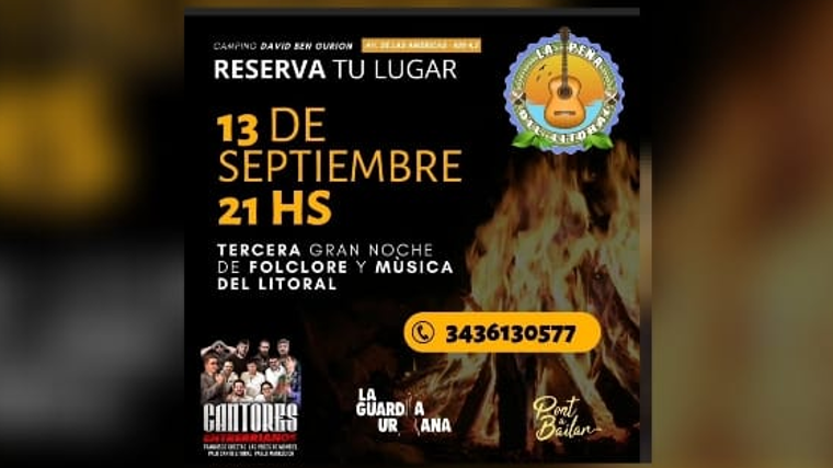 Se llevará a cabo la Tercera Edición de La Peña del Litoral. De la misma participarán: La Guardia Urbana, Pont a Bailar y Cantores Entrerrianos. Una noche a puro folklore y música del litora.