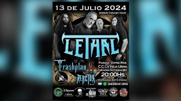 Vuelve "Lethal", la banda pionera del Thrash Argentino. La velada comienza con "Reactor BS AS" 20 Hs y "Trashplan" 20:50 Hs. Finalizando 22 Hs con "Lethal".