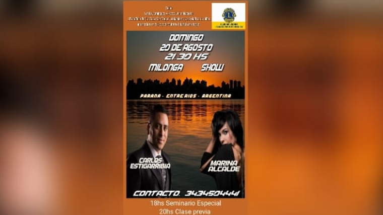 Milonga El Escape presenta a Marina Alcalde y Carlos Estigarribia. Estigarribia (Arg) reside en Italia destacado por ser triple campeón metropolitano, dos veces subcampeón mundial y actual campeón Europeo. Alcalde es Española y múltiple veces finalista del mundial de Tango.