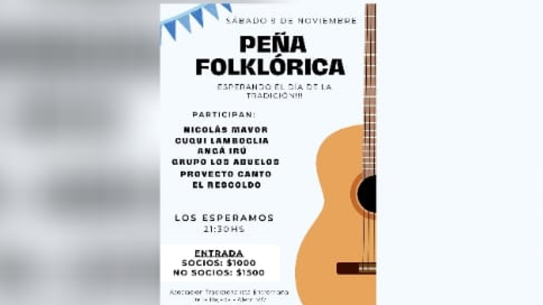 En el marco del día de la tradición se va a realizar el día previo una nueva edición de la "Peña Folclórica", En esta oportunidad van a participar: Nicolas Mayor; Cuqui Lambloglia; Angá Iru; Grupo "Los Abuelos"; Proyecto Canto y El Rescoldo.