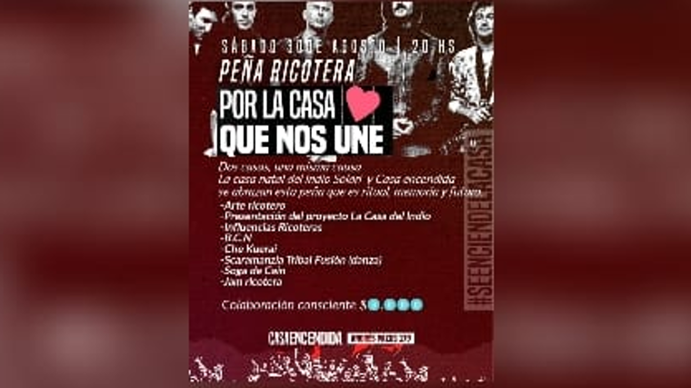 Peña Ricotera: Por la casa que nos une. Una grilla full Ricotera, memoria y futuro. Nos encontramos para celebrar dos casas que laten fuerte: La del Indio Solari y la nuestra, que se enciende con cada abrazo colectivo.