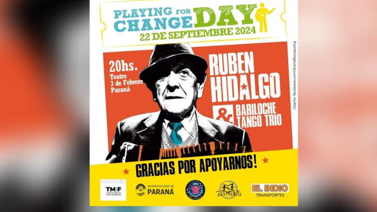 Una noche única para disfrutar con un grupo ecléctico de artistas, que te llevarán desde el tango hasta percusión afro-latina. El maestro Rubén Hidalgo, con más de 70 años de trayectoria nacional e internacional, se presentará junto a Bariloche Tango Trio con todo su arte y pasión. También participarán Agua de Río Percusión, Elemento y otros artistas invitados.