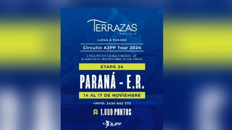 Paraná albergará el Primer torneo de pádel profesional en el Circuito AJPP Tour 2024. Nuestra ciudad se prepara para recibir un histórico torneo de paddle profesional que se llevará a cabo del 14 al 17 de este mes en Terrazas Pádel Club.