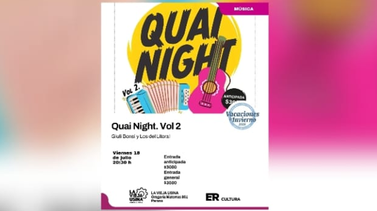 Se viene la segunda edición de QUAI NIGHT, una noche íntima, en formato acústico, para disfrutar de folklore junto a Giuli Bonsi y Los del Litoral.