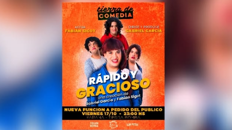 Fabian Sigot llega a Tierra Bomba con su unipersonal para reir de principio a fin junto a un desfile de personajes disparatados como son La Caro, Inés, Lorena, Viviana y José María Domingo. Una obra producida GRG Producciones e intepretada por Fabian Sigot.