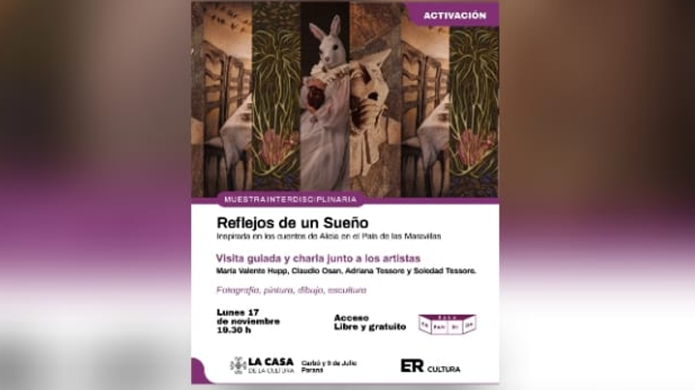Se activa "Reflejos de un Sueño", con la presencia de los artistas para compartir el proceso de obra con una visita guiada y charla. Visita guiada junto a los artistas: María Valente Hupp, Claudio Osan, Adriana Tessore y Soledad Tessore.