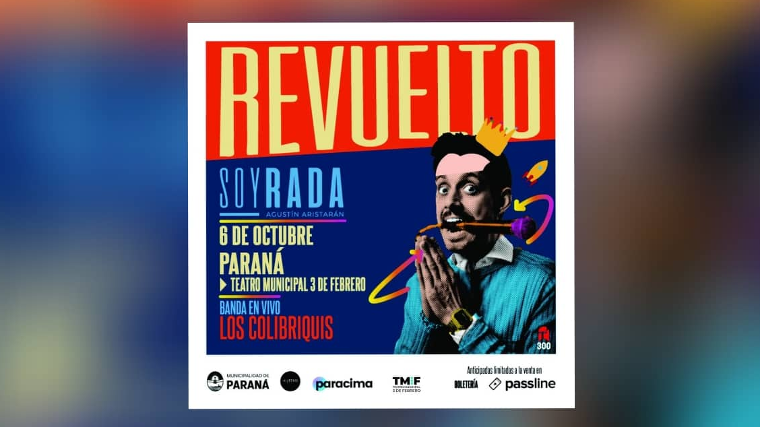 Agustín Aristarán "Soy Rada" presenta "REVUELTO". En este espectáculo, Soy Rada nos pasea por las instantáneas de este camino, por los hitos que le hicieron saltar una y otra vez a nuevos trazos, nuevos lenguajes, nuevos vértigos, nuevas historias para contar. En el relato no hay cronología, todo convive en su creación: lo que fue, lo que es, lo que se viene.