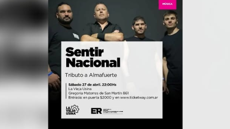 Se estará presentando nuevamente en nuestra ciudad "Sentir Nacional", se trata de una banda tributo a "Almafuerte".