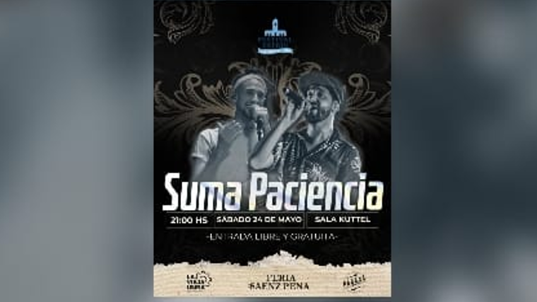 Se realizará la Feria Saenz Peña, de la misma participarán artesanos, gastronómicos y contará con entretenimiento para toda la familia y muchas sorpresas. En la misma tambien se podrá disfrutar de música en vivo, entre las cuales se presentará "Suma Paciencia"; "Groove Amor"; Barrio del Sol" en Sala Kuttel.