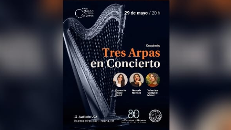 Entrada: Entradas gratuita para socios (deberán presentar carnet de socio en la entrada) / Entradas general online a la venta en tickea: https://www.tickea.com.ar/tres-arpas-en-concierto/p/10098