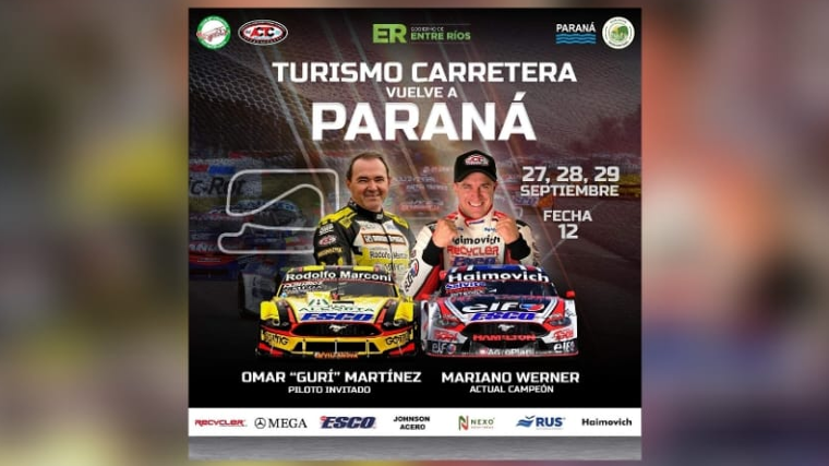 El Turismo de Carretera vuelve al Club de Volantes Entrerrianos después de dos años sin su presencia en el escenario de la Ciudad de Paraná. En esta oportunidad será una competencia especial, ya que a la presencia del múltiple campeón de la categoría Mariano Werner, se suma la participación del Gurí Omar Martínez, como piloto invitado. ¡Vuelven a rugir los motores en el autódromo Ciudad de Paraná en la 12° fecha del TC y TC Pista!