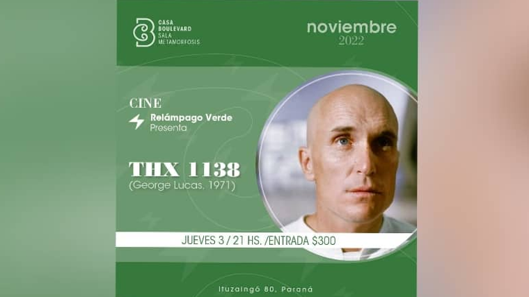Relámpago Verde presenta "TXH 1138" Primer largometraje de George Lucas estrenado en 1971. Se trata de una versión alargada de un cortometraje del mismo cineasta "Electronic Labyrinth THX 1138 AEB (1967).