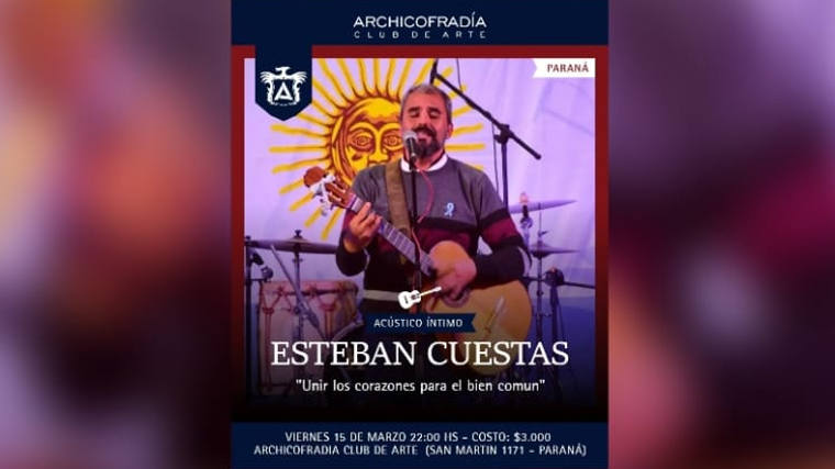 Este viernes se estará presentando Esteban Cuestas para dar un show íntimo con "Unir los corazones para un bien común"