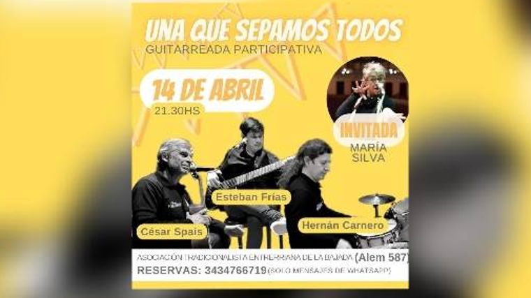 "Una que sepamos todos" realiza una guitarreada participativa de la cual, en esta oportunidad contará con la presencia de María Silva como invitada especial de la noche.