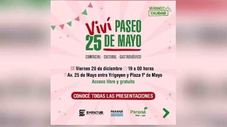 Desde Plaza 1.° de Mayo hasta Yrigoyen, participarán más de 80 artistas locales que intervendrán el espacio público en una propuesta comercial, cultural y gastronómica. En la misma se estarán presentando las siguientes bandas y artistas: @lapostarnr , @virusoficial , @pont.a.bailar y @thelaplanta como también contará con intervenciones culturales entre las cuales estan @play.flow.performer, @varietalescoro
