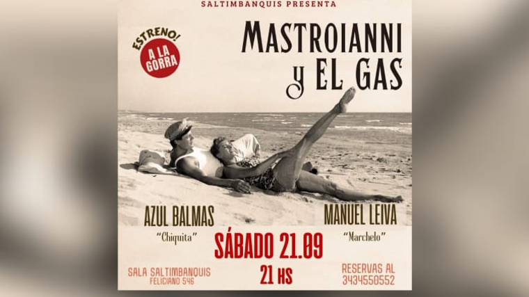 "Mastroianni y el Gas" una comedia donde la realidad y la ficción se funden a la luz de un proyector de cine y al calor de garrafas incandecentes. En esta obra Marchelo y Chiquita tienen la pasión, tienen el convencimiento, tienen un plan. Una peligrosa acción está a punto de alterar la aparente tranquilidad de un pueblo en medio de la provincia de Entre Ríos. Dos enamorados militantes de la cultura ponen a prueba hasta donde son capaces de llegar para lograr sus fines.